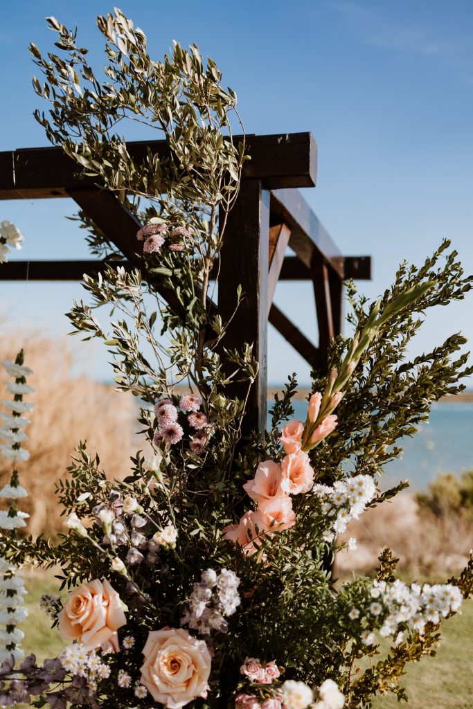 Destacó la decoración floral que junto con el paisaje donde se celebro hiso del espacio un ambiente único para disfrutar de su ceremonia civil.