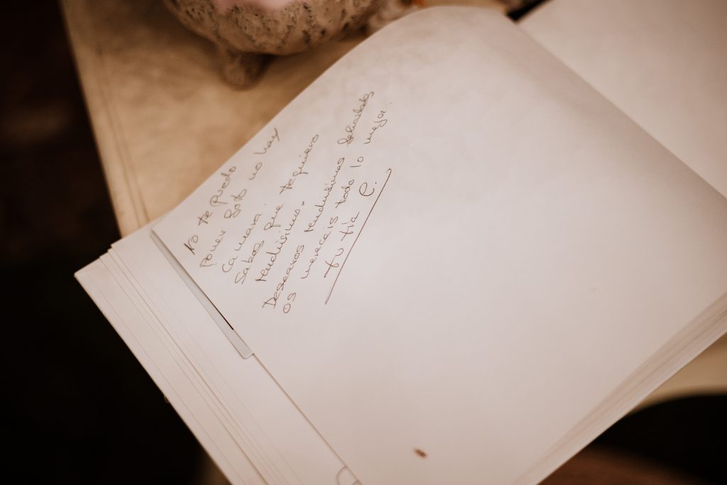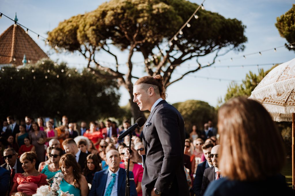 La ceremonia fue una ceremonia civil donde hablaron sus amigos y familiares mas cercanos y donde a todos se les escapó una lagrimilla! Una ceremonia muy emocionante.