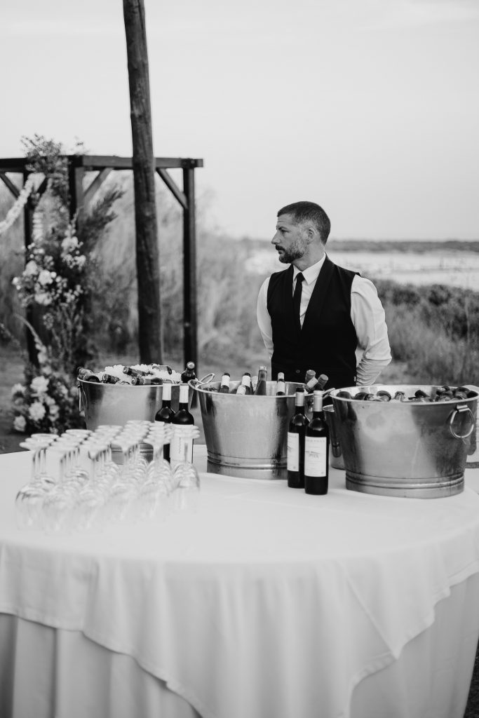 Disfrutaron de varios del espacios del propio espacio haciendo la parte del coctel y la cena en exterior. Una noche de verano con un tiempo envidiable donde la brisa marina refrescaba el ambiente de la cena.