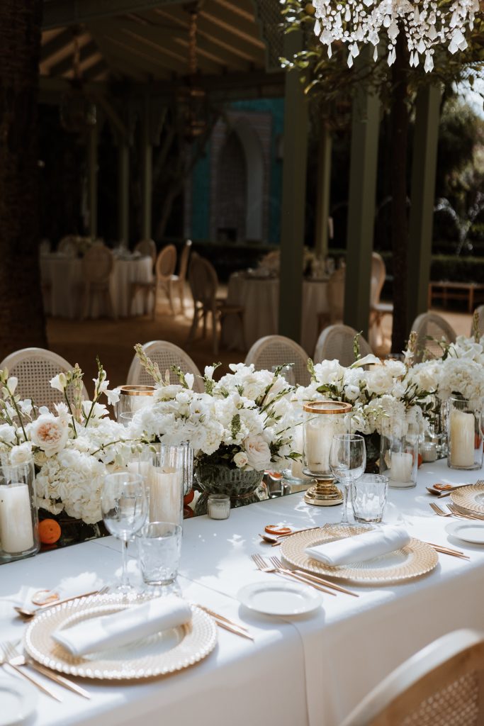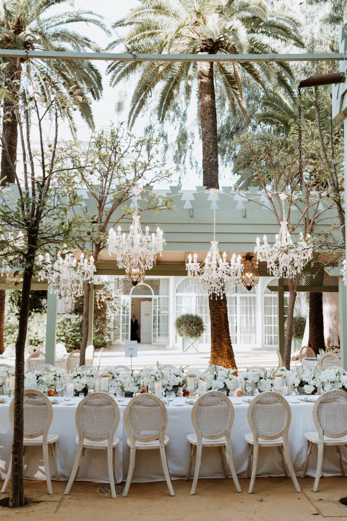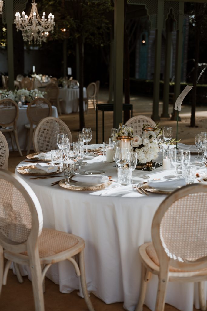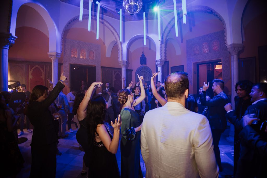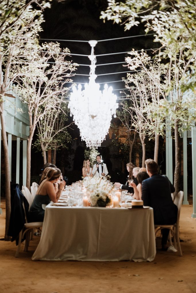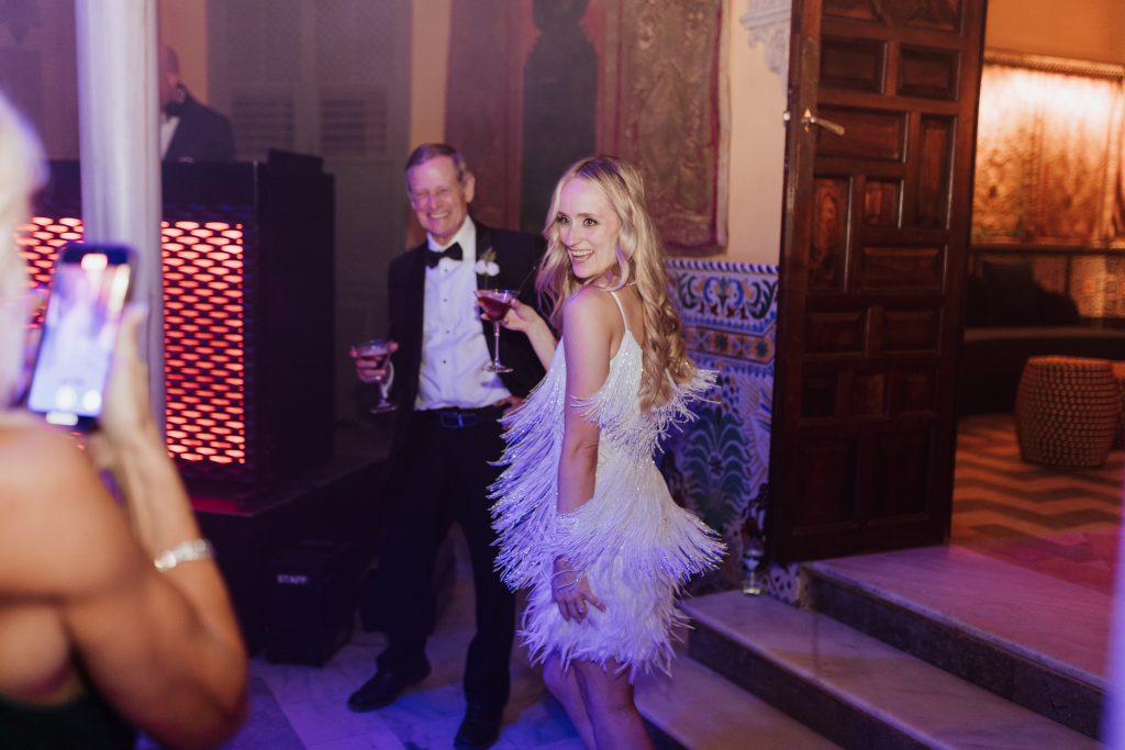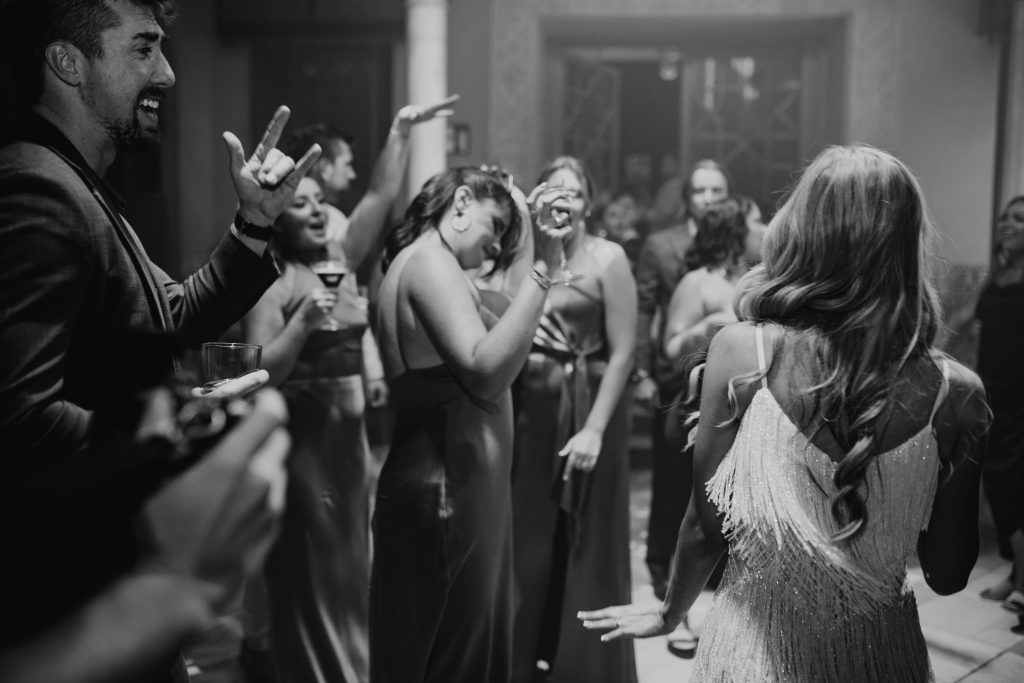 Tras la ceremonia, la fiesta continuó en un elegante salón con vistas a un jardín que recuerda a los famosos jardines del parque María Luisa de la ciudad. La decoración combinaba elementos tradicionales sevillanos con detalles modernos, creando un ambiente cálido y sofisticado. La música en vivo, con fusiones de estilos internacionales, animó a todos a bailar y disfrutar.