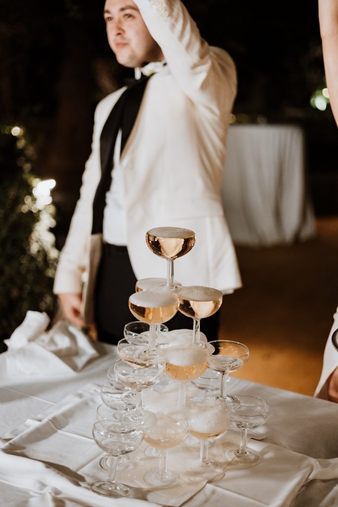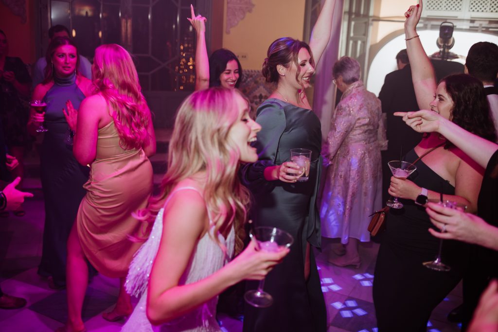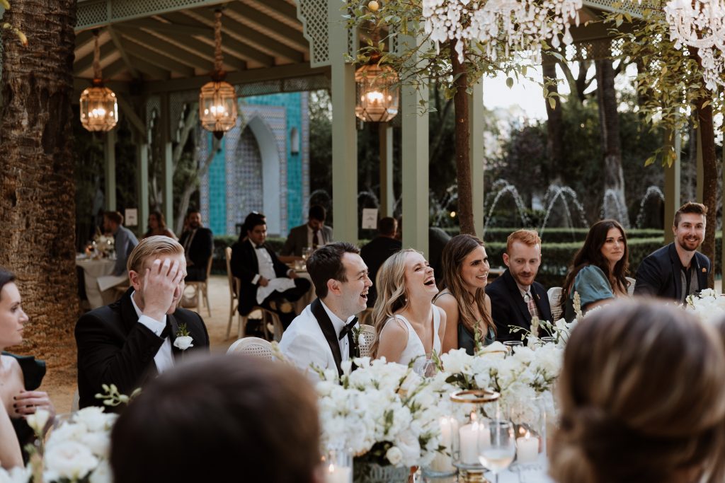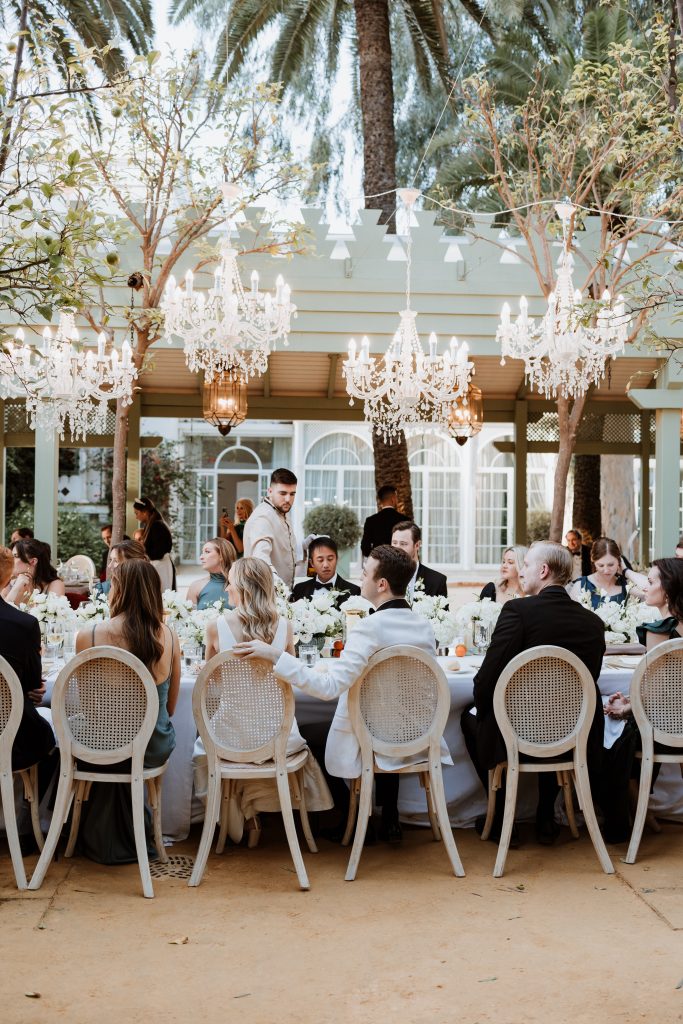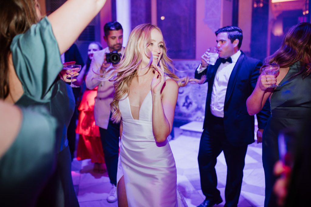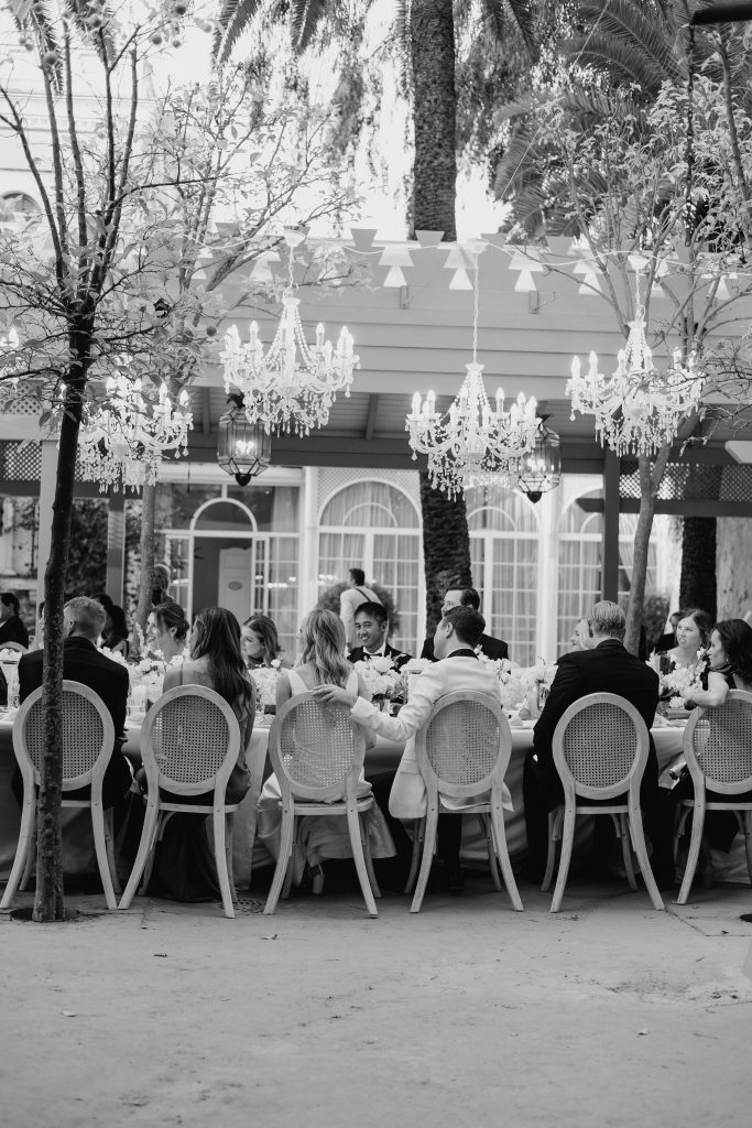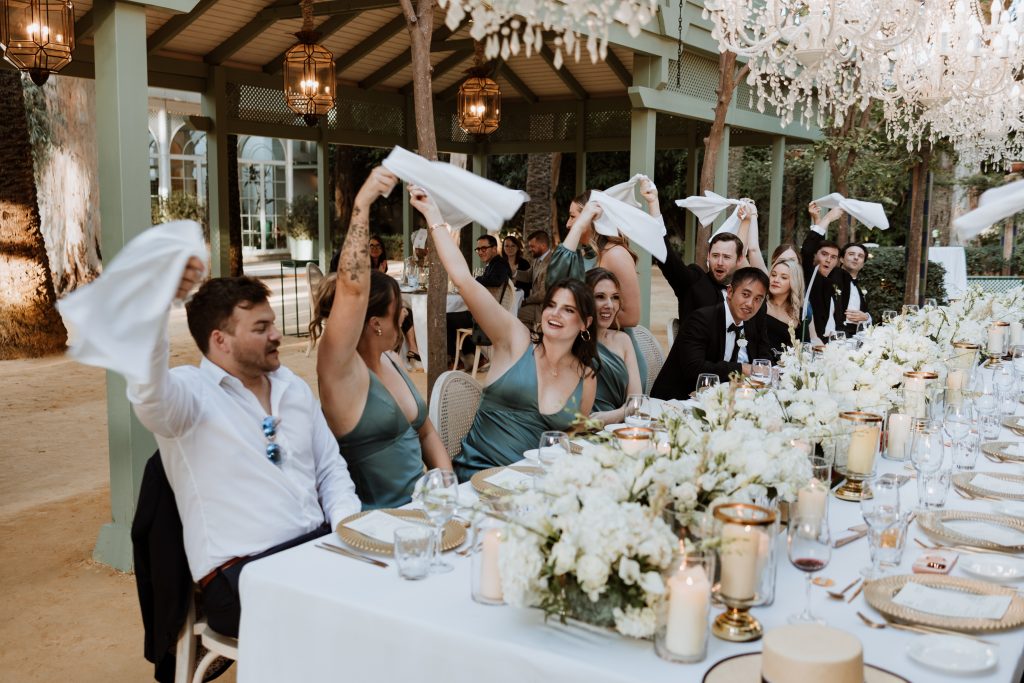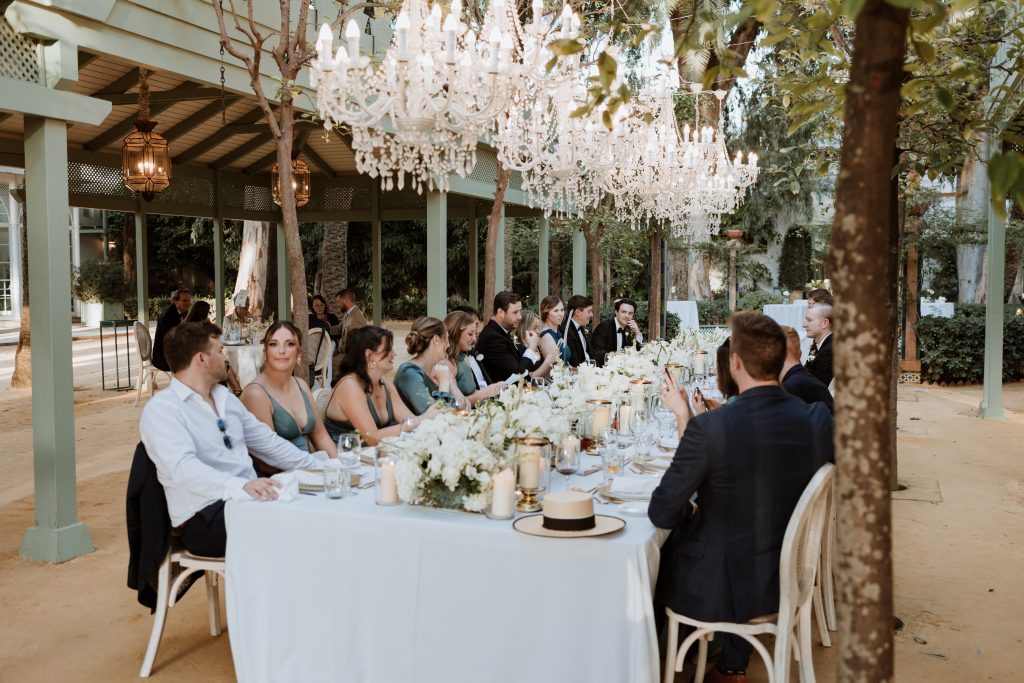 Tras la ceremonia, la fiesta continuó en un elegante salón con vistas a un jardín que recuerda a los famosos jardines del parque María Luisa de la ciudad. La decoración combinaba elementos tradicionales sevillanos con detalles modernos, creando un ambiente cálido y sofisticado. La música en vivo, con fusiones de estilos internacionales, animó a todos a bailar y disfrutar.