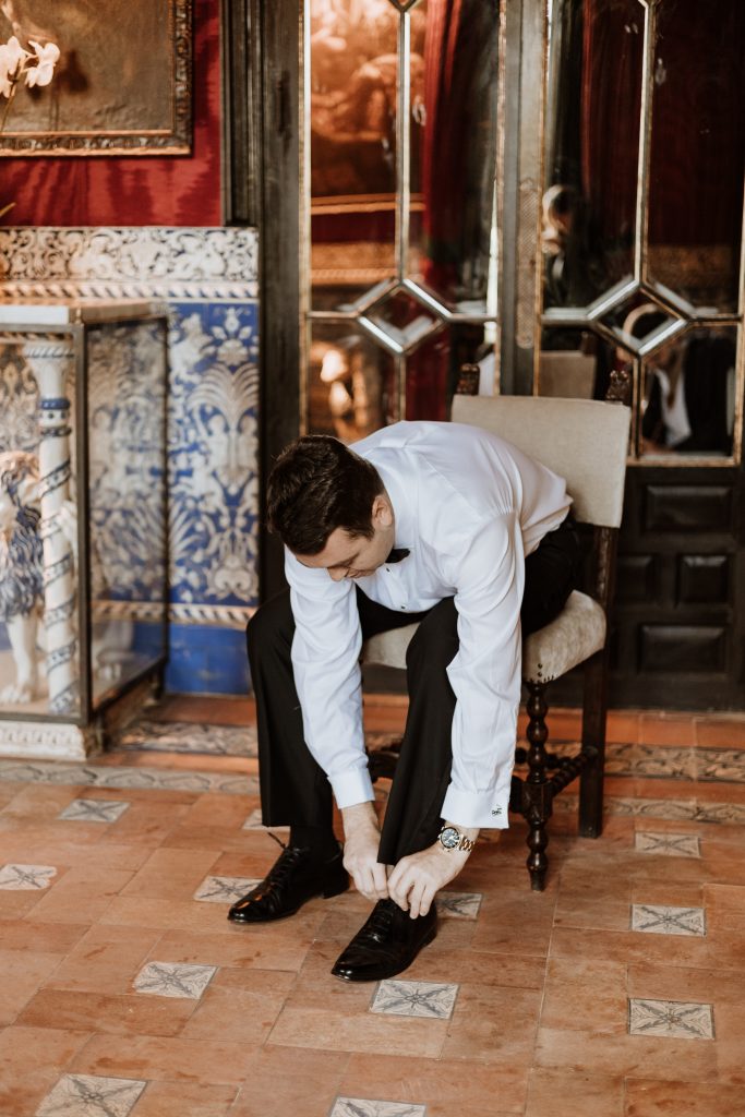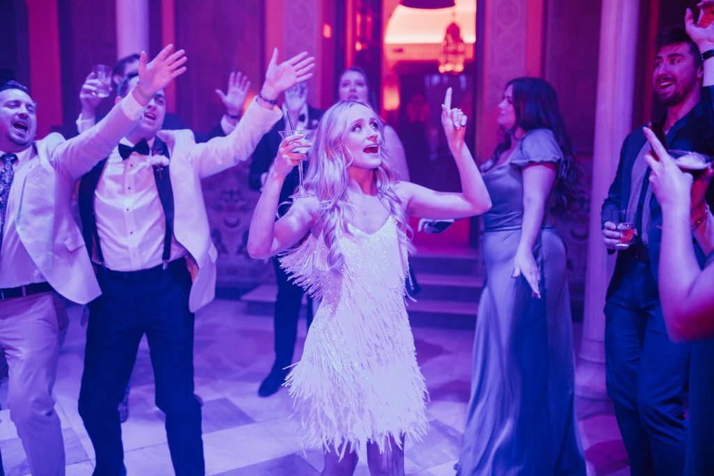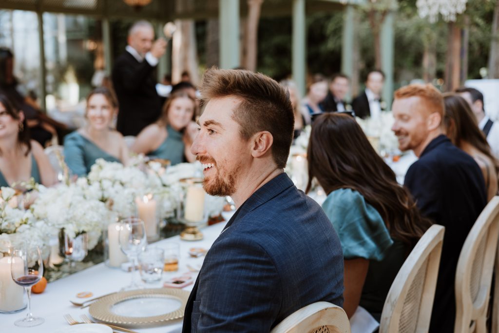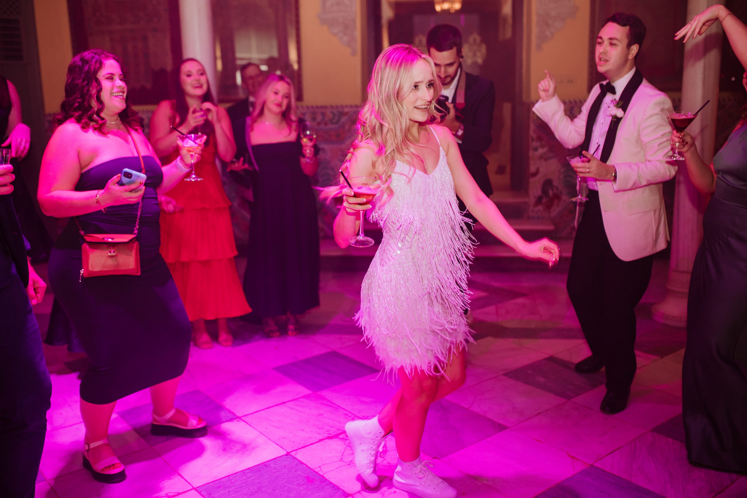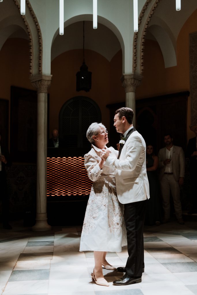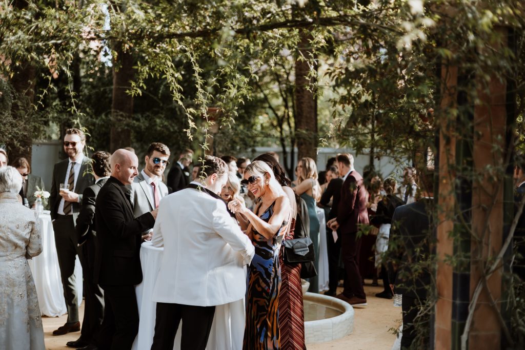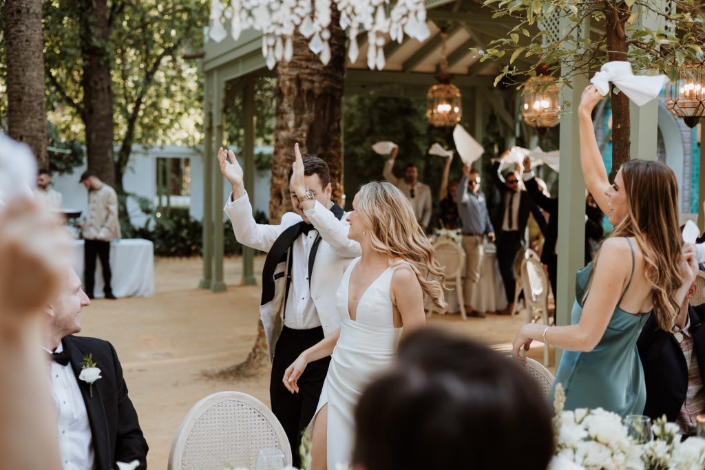 Tras la ceremonia, la fiesta continuó en un elegante salón con vistas a un jardín que recuerda a los famosos jardines del parque María Luisa de la ciudad. La decoración combinaba elementos tradicionales sevillanos con detalles modernos, creando un ambiente cálido y sofisticado. La música en vivo, con fusiones de estilos internacionales, animó a todos a bailar y disfrutar.
