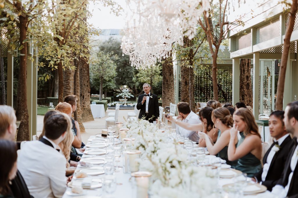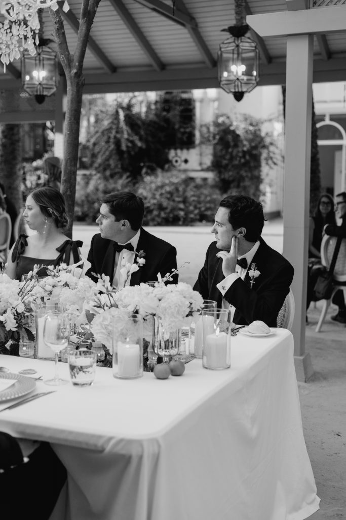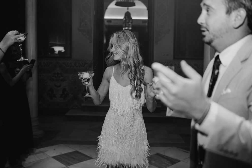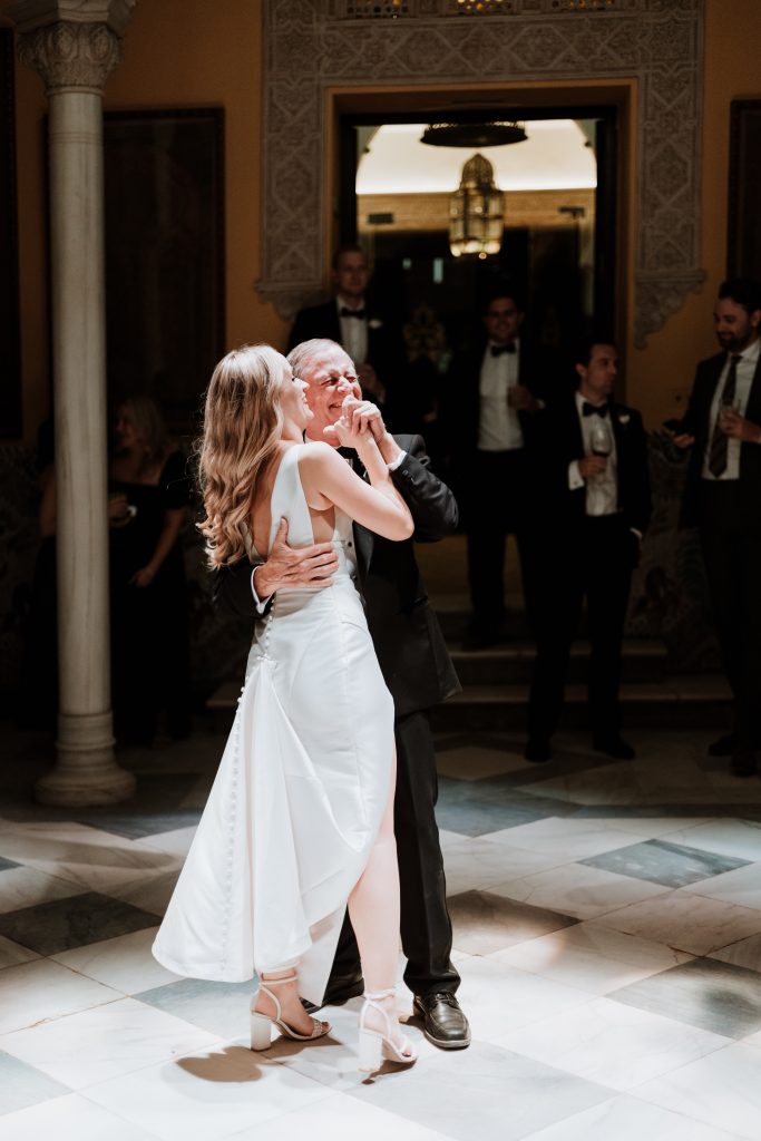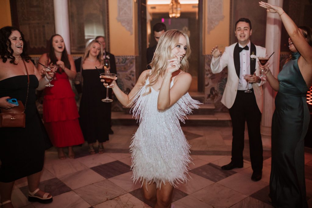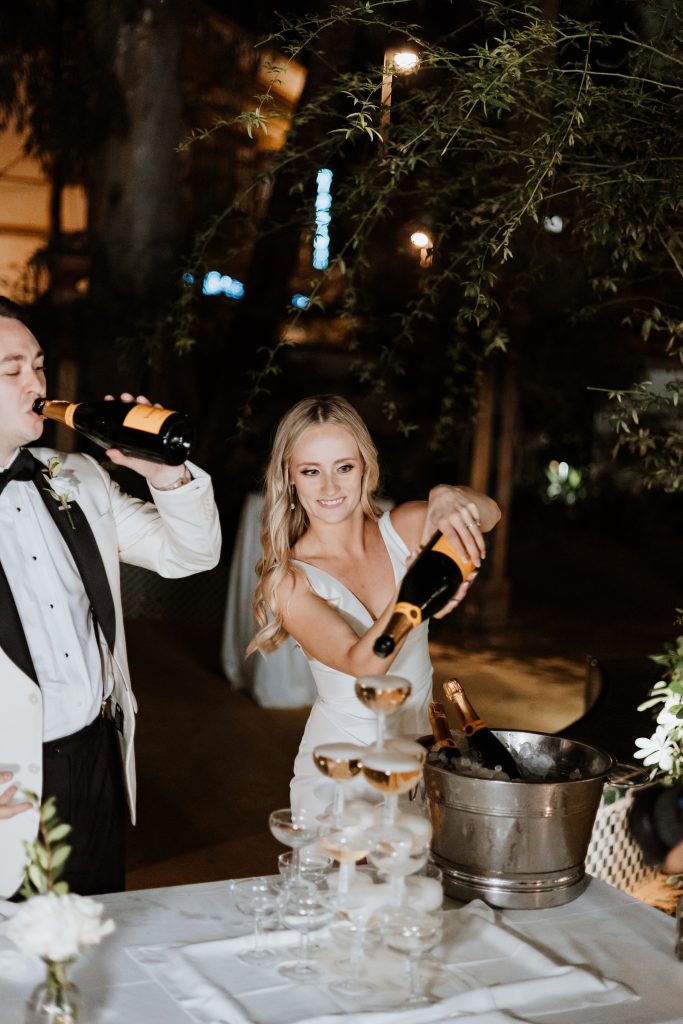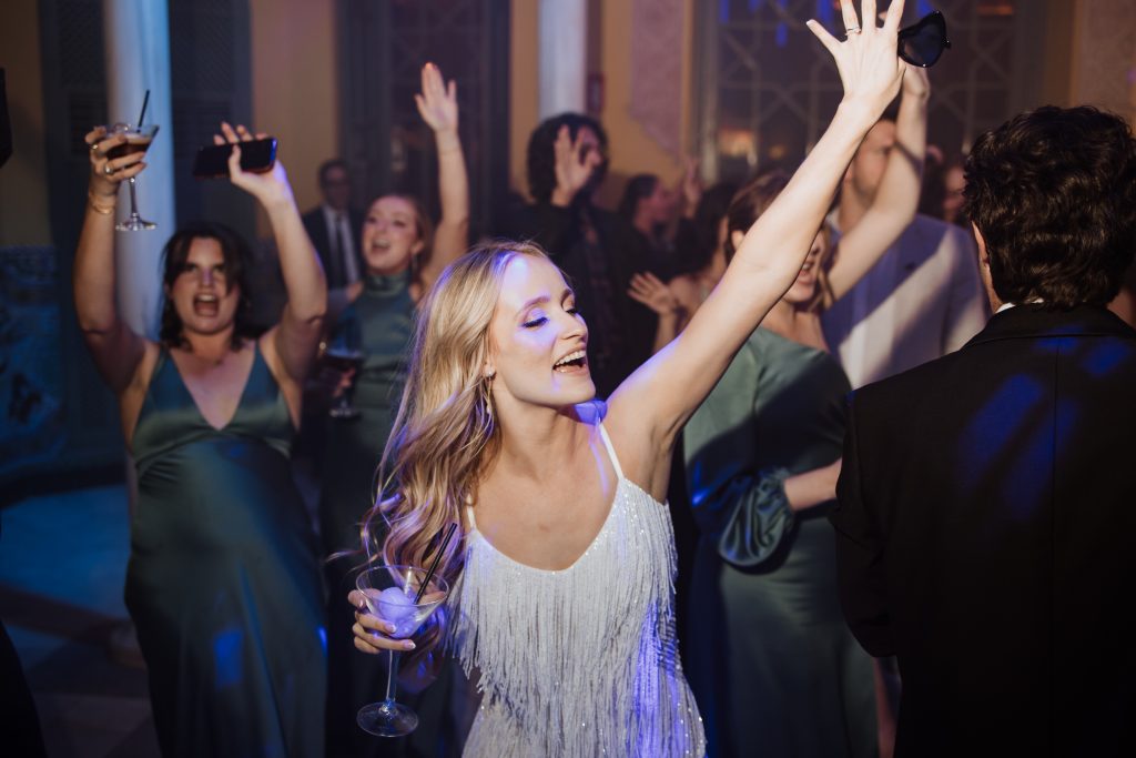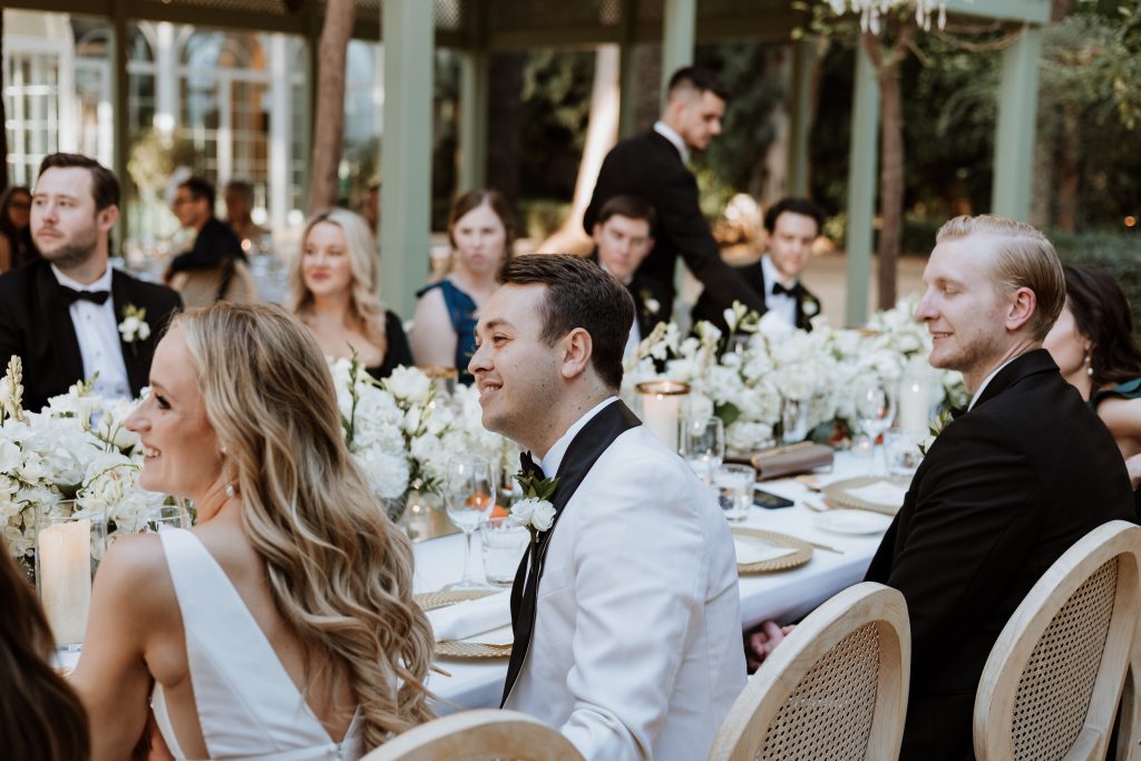 Tras la ceremonia, la fiesta continuó en un elegante salón con vistas a un jardín que recuerda a los famosos jardines del parque María Luisa de la ciudad. La decoración combinaba elementos tradicionales sevillanos con detalles modernos, creando un ambiente cálido y sofisticado. La música en vivo, con fusiones de estilos internacionales, animó a todos a bailar y disfrutar.