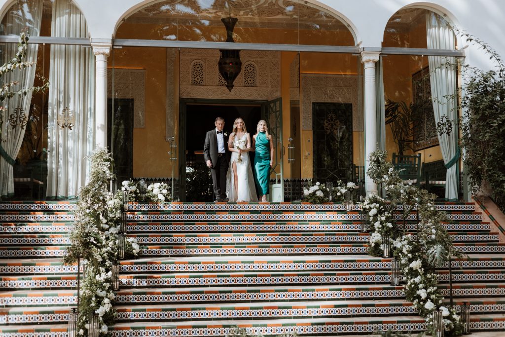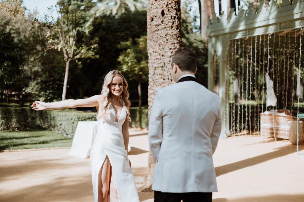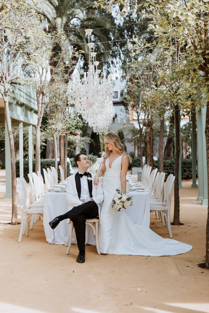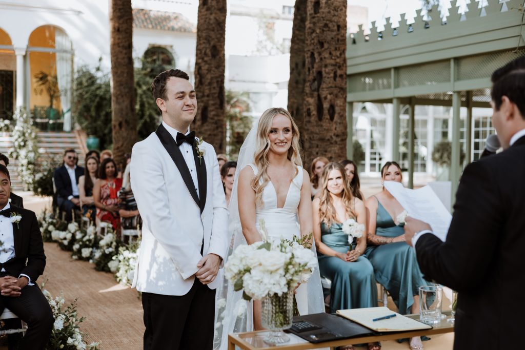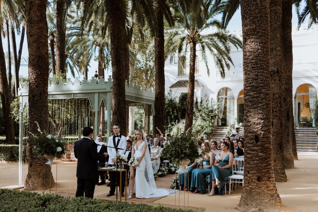 Katie y Railly decidieron celebrar su boda en Sevilla, uniendo sus vidas en un día lleno de emociones. La ceremonia se realizó en el hermoso espacio de Villaluisa con vistas a sus jardines estilo andaluz, rodeados de familiares y amigos de diferentes países. La mezcla de idiomas, tradiciones y sonrisas reflejaba la belleza de una boda internacional en Sevilla.