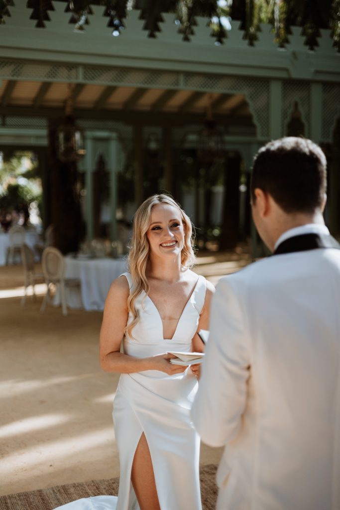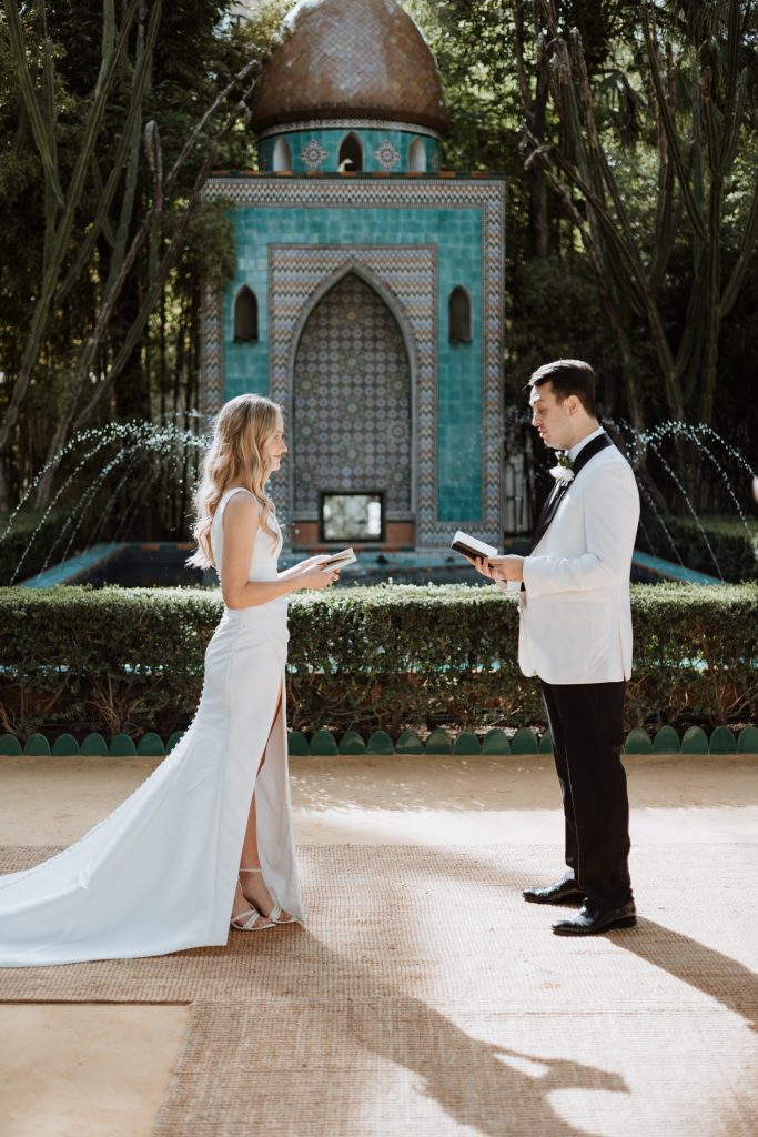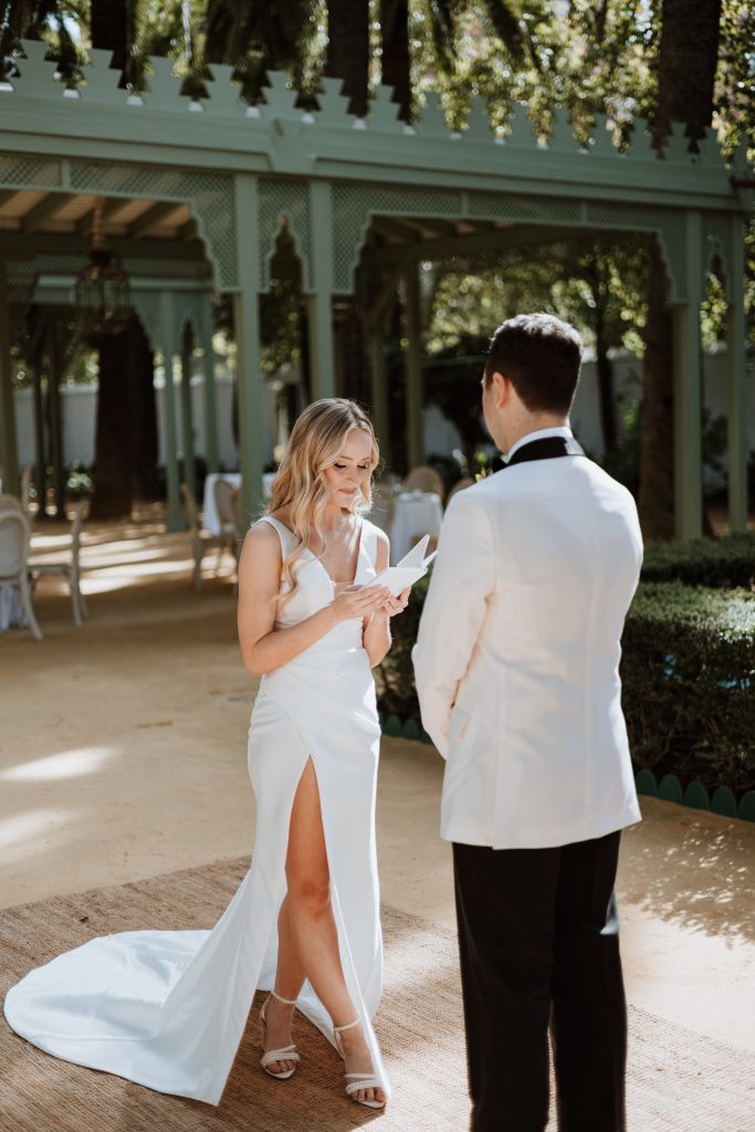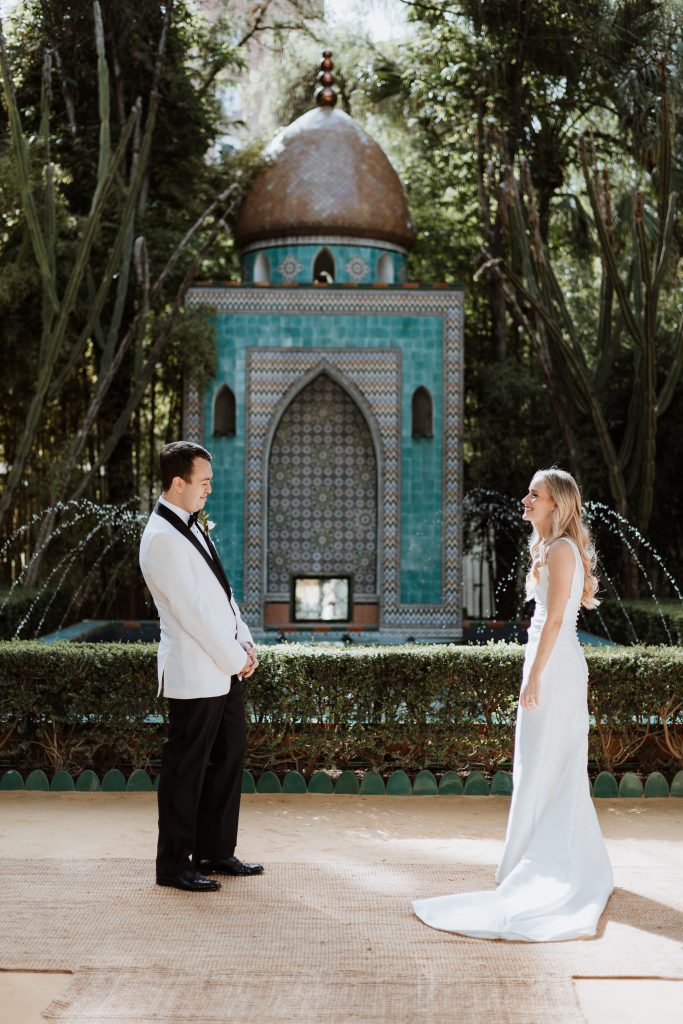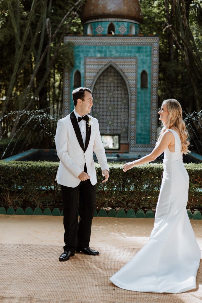 Katie y Railly decidieron celebrar su boda en Sevilla, uniendo sus vidas en un día lleno de emociones. La ceremonia se realizó en el hermoso espacio de Villaluisa con vistas a sus jardines estilo andaluz, rodeados de familiares y amigos de diferentes países. La mezcla de idiomas, tradiciones y sonrisas reflejaba la belleza de una boda internacional en Sevilla.