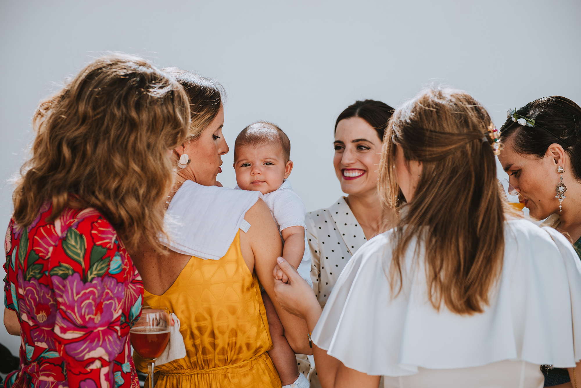 La ceremonia fue en el pasillo de entrada central de la bodega, bajo la sombra de una parra antigua, que creo un ambiente tan agradable como bonito, fue una ceremonia muy cercana, natural y sencilla con sus familiares y amigos.