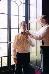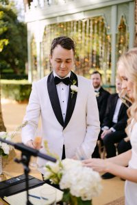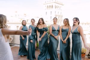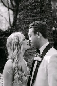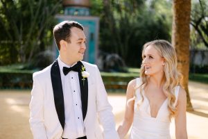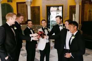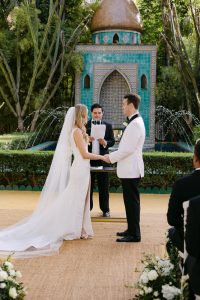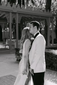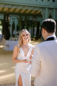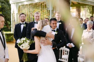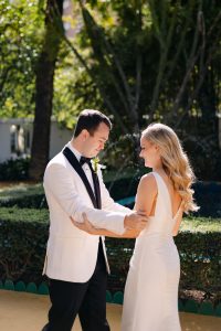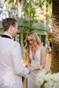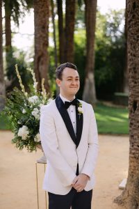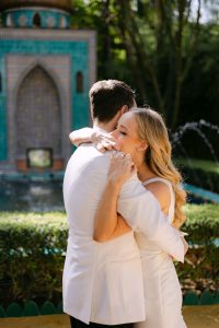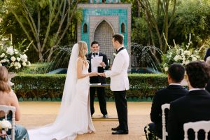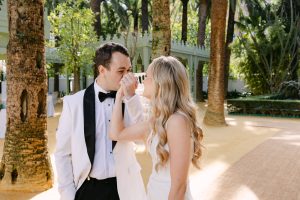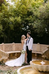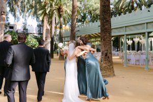 Una vez estuvieron listos, Katie & Reilly se encontraron en la icónica fuente de azulejos de la hacienda para su esperado First Look. Fue un instante íntimo y profundamente emotivo lleno de lágrimas, sonrisas y abrazos que conseguimos captar gracias a una fotografía natural para que cada instante fuera real.