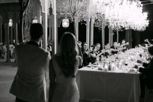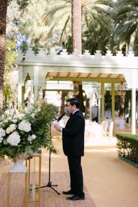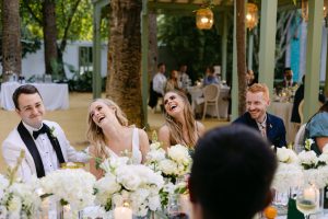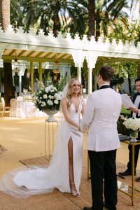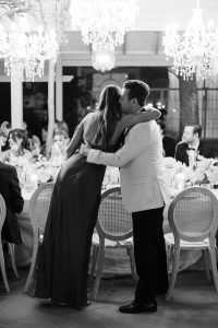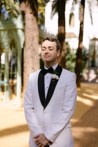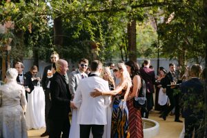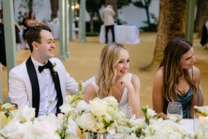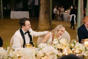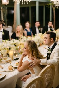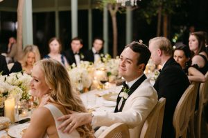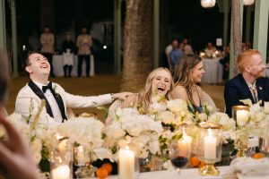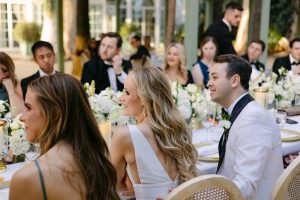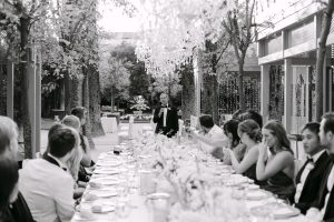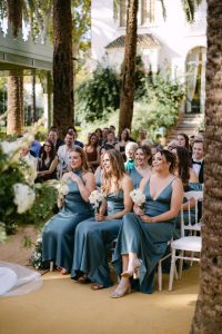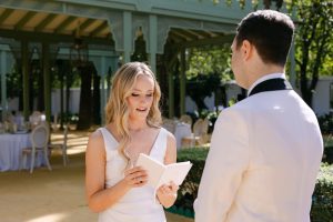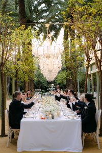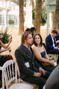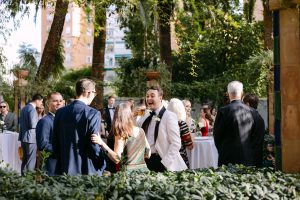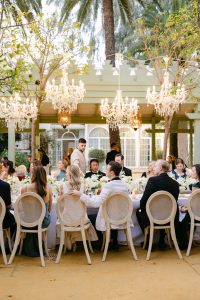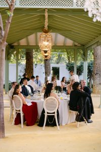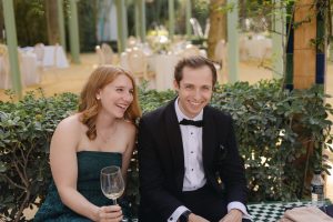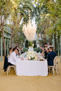 La atmósfera era mágica. La vegetación y la arquitectura señorial del lugar envolvían la velada en un ambiente íntimo y exclusivo, perfecto para una boda internacional en Sevilla. Cada detalle fue captado con naturalidad por Blanco White, resaltando la elegancia y la naturalidad de cada instante.