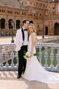 Fotografía de boda de destino en Villa Luisa, un enclave único dentro de Sevilla.