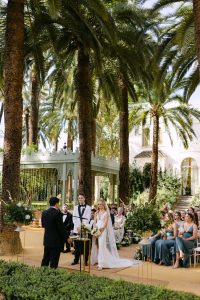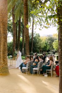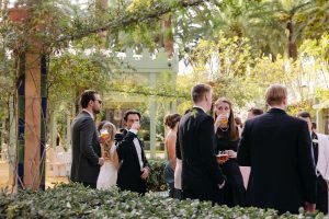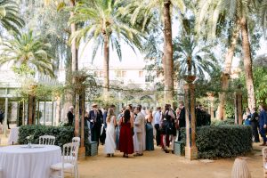Al finalizar la ceremonia, los invitados disfrutaron de un cóctel en el patio rodeados de vegetación y palmeras donde sirvieron aperitivos típicos de Andalucía.