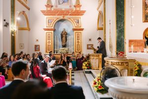 Durante la ceremonia religiosa captamos cada detalle: el intercambio de anillos, la velación de los novios y las miradas llenas de emoción. Nuestro trabajo en vídeo y fotografía se centró en recoger la esencia del momento con un estilo natural y elegante, sin interferir en el desarrollo de la celebración.
