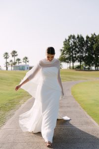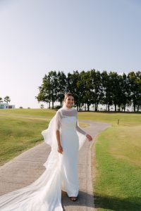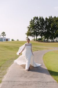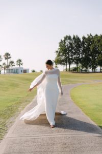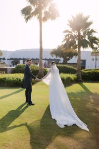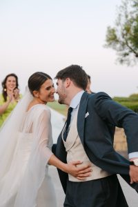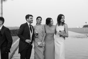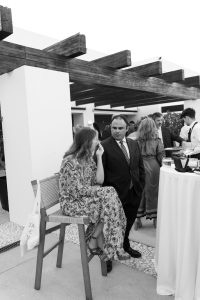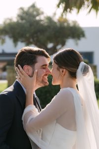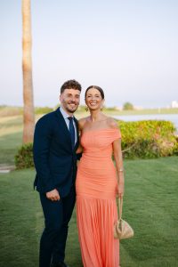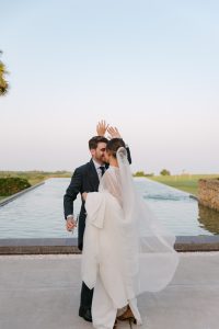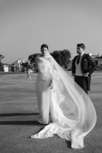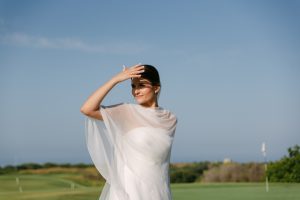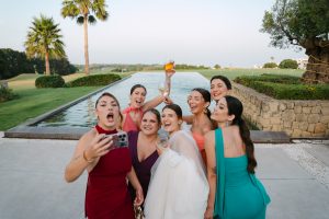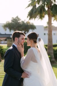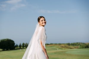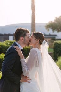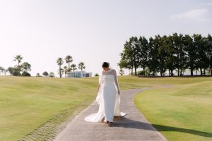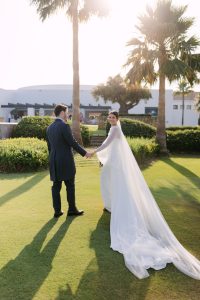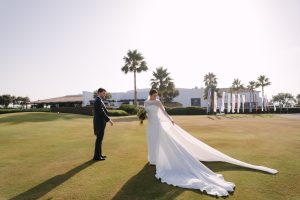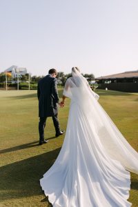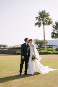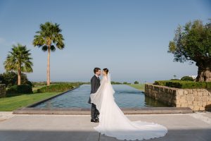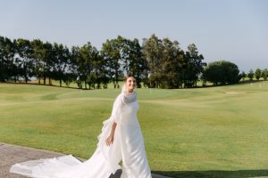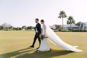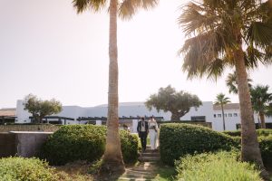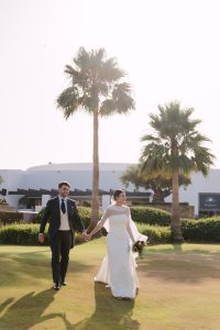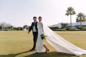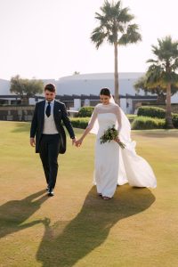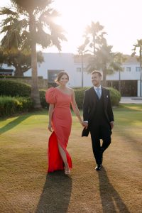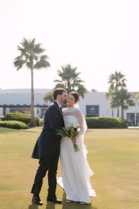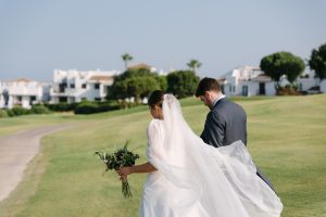 Antes de unirse al cóctel, realizamos la sesión de pareja en Hacienda Links Golf Resort de San Roque, un enclave privilegiado con impresionantes vistas al mar desde lo alto de sus campos de golf. Este entorno nos permitió crear encuadres únicos tanto en fotografía como en vídeo, aprovechando la luz natural y el horizonte infinito del Mediterráneo como telón de fondo. El resultado: imágenes elegantes, atemporales y llenas de complicidad.