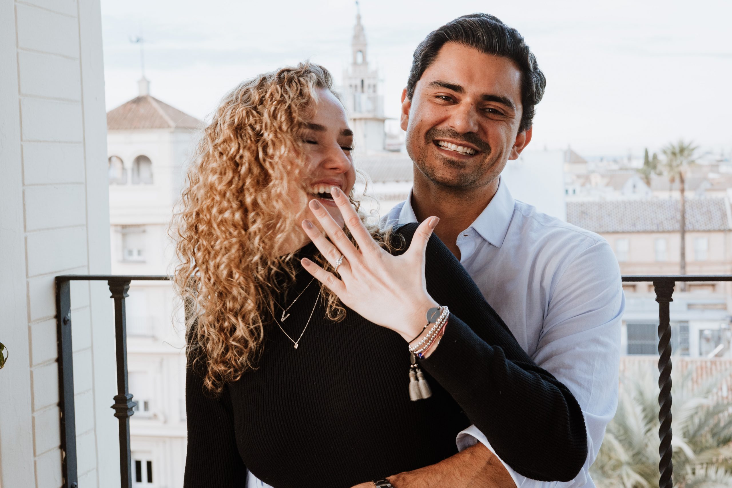 Comenzaron con un tour por el Hotel que finalizaba en el torreón con vistas a la ciudad de Sevilla y a la Giralda, fue ahí donde Jorge se arrodillo con un precioso anillo y le pidió la mano a Victoria mientras escuchaban su canción favorita. Una emocionada Victoria le dijo que Sí y entre lágrimas y felicidad se abrazaron celebrando este nuevo compromiso.