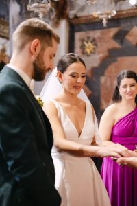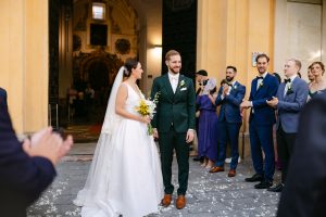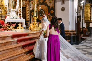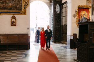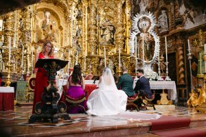 La ceremonia tuvo lugar en pleno centro de Sevilla, en la majestuosa Real Parroquia de Santa María Magdalena, una iglesia impresionante por su enorme retablo, sus pinturas al fresco en las bóvedas y la belleza de cada detalle arquitectónico.