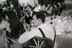 La cena tuvo lugar en otro patio, iluminado íntimamente a la luz de las velas, creando una atmósfera mágica y acogedora donde familiares y amigos recordaron momentos únicos.